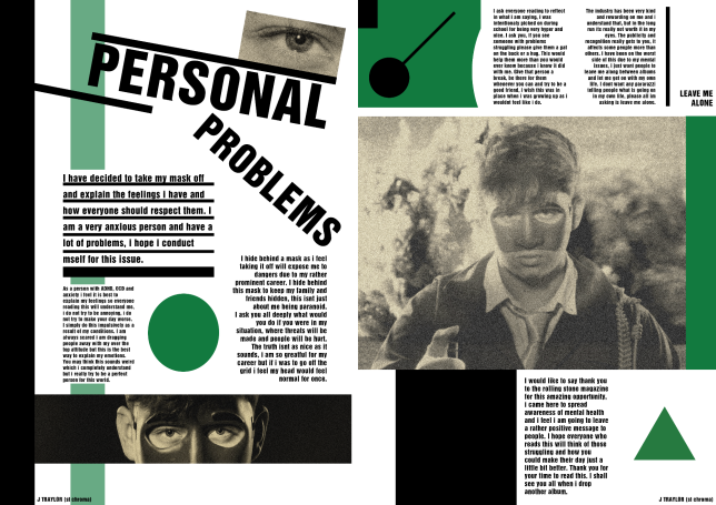 I take major inspiration from album covers and designs from my favourite music artists, you can see the examples that have been bought to fluition through my work.